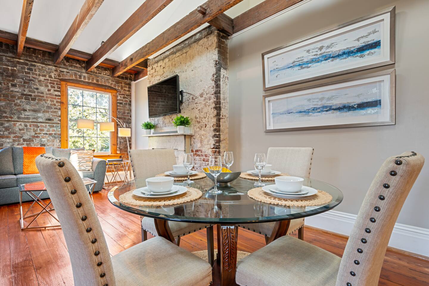 Welcome to The Southern Sailor, a historic retreat built in 1853 by Captain Henry James Dickerson, a key figure in Savannah’s maritime history. This unique property seamlessly combines four charming apartments into one expansive home, offering 10 bedrooms and 10 bathrooms. Perfect for large groups, family reunions, or small retreats, The Southern Sailor comfortably accommodates up to 24 guests, providing plenty of space to gather, relax, and enjoy Savannah’s timeless beauty. Located in the heart of Savannah’s Historic District, this home offers an incredibly walkable location where no car is needed. Simply Uber from the airport and explore the city on foot, from historic squares and landmarks to world-class dining and shopping. Positioned on the St. Patrick’s Day parade route, The Southern Sailor puts you at the center of one of Savannah’s most celebrated traditions. Inside, you’ll find a stunning blend of historic charm and modern amenities, with exposed brick interiors and panoramic views of Savannah’s skyline. Whether you’re planning a special celebration, a peaceful retreat, or a memorable group getaway, The Southern Sailor provides a truly unique and inviting space to create unforgettable memories. All king bedrooms (total of 6) are ensuite for incredible privacy and comfort. Enjoy luxury linens on each bed. All four apartments of the main home are combined to form this unique listing, perfect for groups of any size. Guests will enjoy the extremely walkable location as well as 4 kitchens, 3 outdoor balconies (one rooftop) and even a movie room. Let the Souther Sailor create an amazing backdrop to your unforgettable vacation in Savannah. How can we make your stay historic? Please let us know how we can make your stay even more special. Would you like a private chef experience? How about in home spa services? Whatever we can provide to make your stay more enjoyable, simply reach out anytime. We are a proud local management company with the ability to provide whatever you and your crew desire. SVR-03092 SVR-03093 SVR-03094 SVR-03095