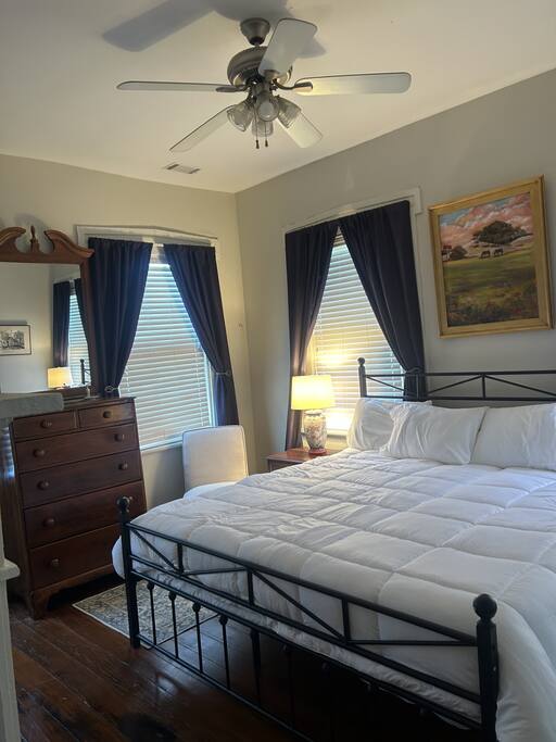 Welcome to your Savannah retreat, just steps from iconic Forsyth Park and within walking distance of the city’s charming shops, restaurants, and historic squares. This 2BR/1BA duplex (upper unit) combines timeless historic character with modern comforts, offering one king and one queen bedroom to comfortably accommodate families, couples, or friends traveling together.
