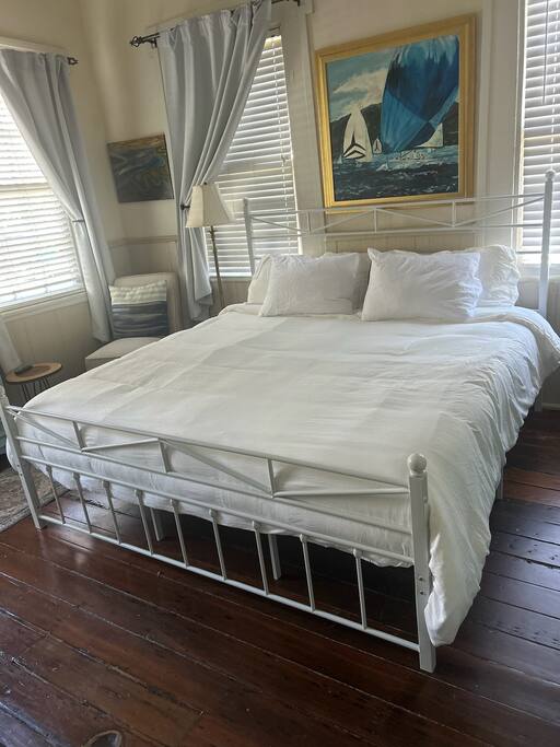 Welcome to your Savannah retreat, just steps from iconic Forsyth Park and within walking distance of the city’s charming shops, restaurants, and historic squares. This 2BR/1BA lower unit combines timeless historic character with modern comforts, offering one king and one queen bedroom to comfortably accommodate families, couples, or friends traveling together.