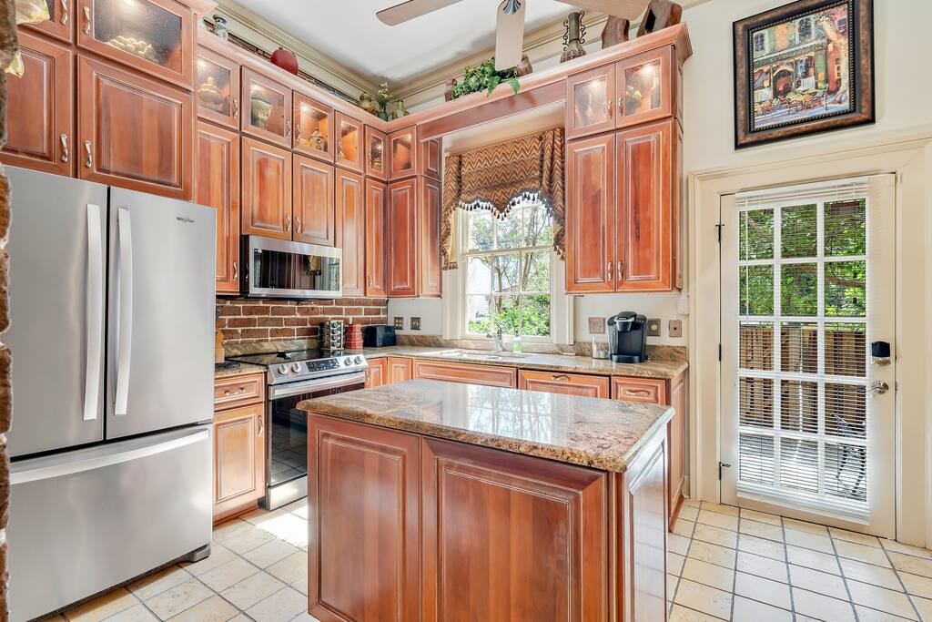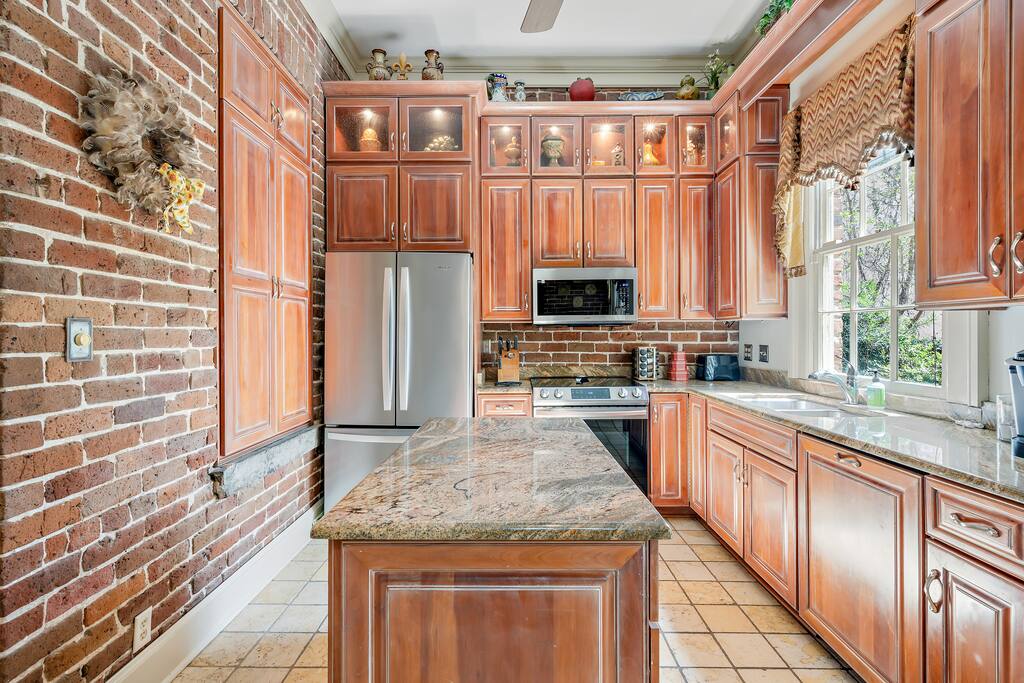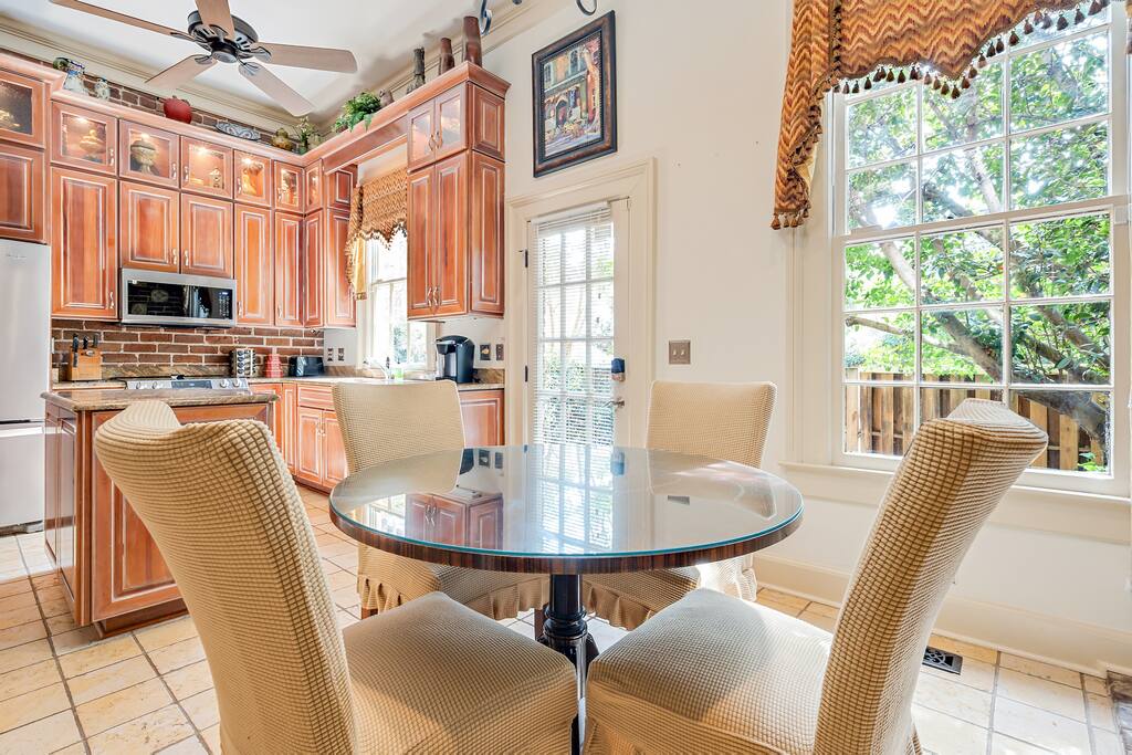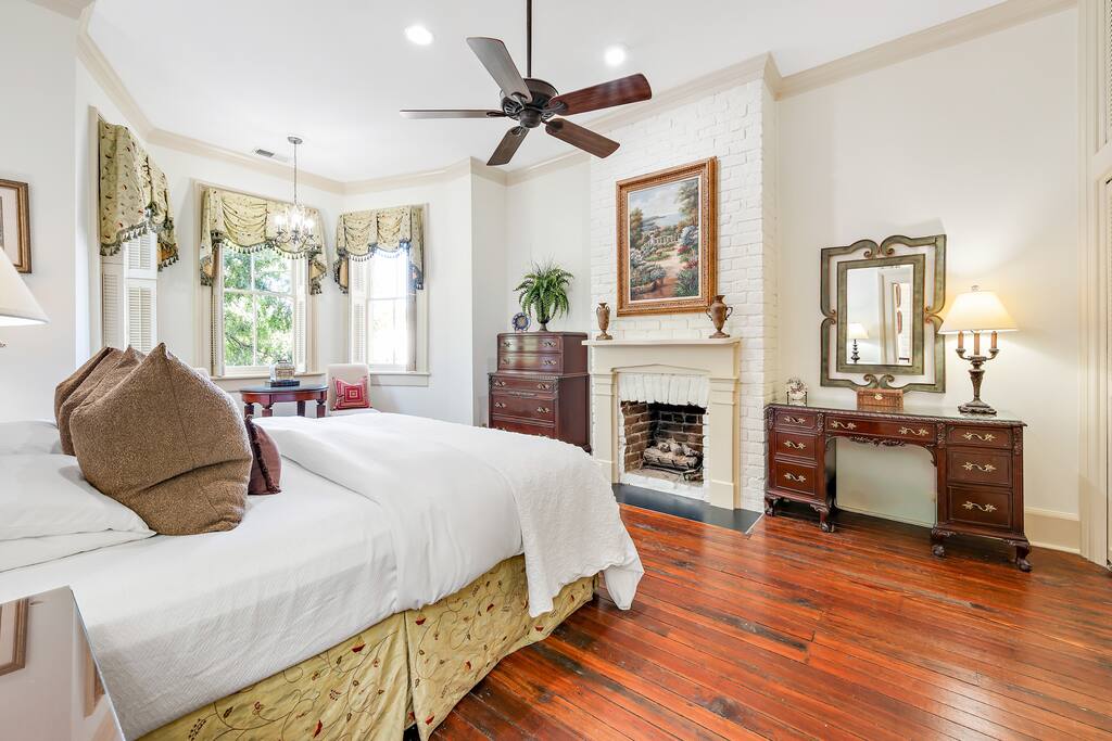 Step right into the opulence of a Gilded Age inspired retreat at the "Gilded Iron & Oak" on historic Broughton Street. This spectacular two-story row house, originally commissioned in 1883 by Alderman Daniel O'Connor, is an architectural masterpiece that perfectly blends Savannah's history with the conveniences of modern, high-end living. The main level of this luxury 3 bedroom residence is designed for seamless entertaining. The open flow showcases the home's historic pedigree with hardwood floors and authentic exposed brickwork that serve as the backdrop for stunning, insta-worthy modern design. The living and dining areas are complemented by a convenient guest bath downstairs. The gourmet kitchen perfectly merges historic exposed brick walls with rich wood cabinetry, granite countertops, and modern stainless steel appliances, offering a high-end, functional space that flows seamlessly into the main living areas and provides direct access to an enclosed garden courtyard perfect for morning coffee or evening cocktails. Upstairs, three private bedrooms are curated as tranquil escapes. Each room is appointed for ultimate comfort, featuring designer linens and sophisticated decor. The primary bedroom features original dark hardwood floors, a stately fireplace with a white brick chimney, and a sunny bay window seating area overlooking Broughton St, all beneath a sophisticated tray ceiling. The second bedroom delivers dramatic historic character with its preserved exposed brick wall, a decorative fireplace, and a skylight that provides both natural light by day and celestial sights at night. The charming third bedroom overlooks the courtyard through its large picture windows, providing a quiet retreat with views of the surrounding trees and excellent natural light. The upper floor also includes two full bathrooms, ensuring comfort and privacy for all guests. Forget the stress of parking—you have two guaranteed private off-street parking spaces, a priceless convenience in the Historic District. The property’s location is your Savannah flex. You are steps from River Street, Forsyth Park, and the city’s best bars and dining. Better yet, the home sits directly on the iconic St. Patrick’s Day parade route. Book the ultimate luxury city experience. SVR-03198