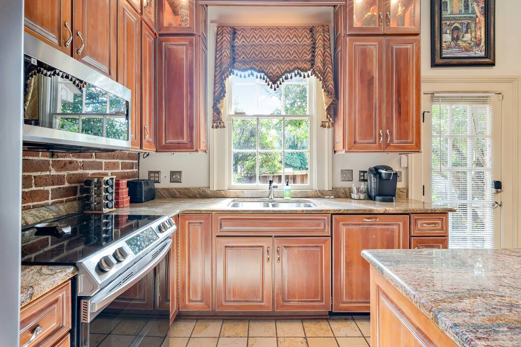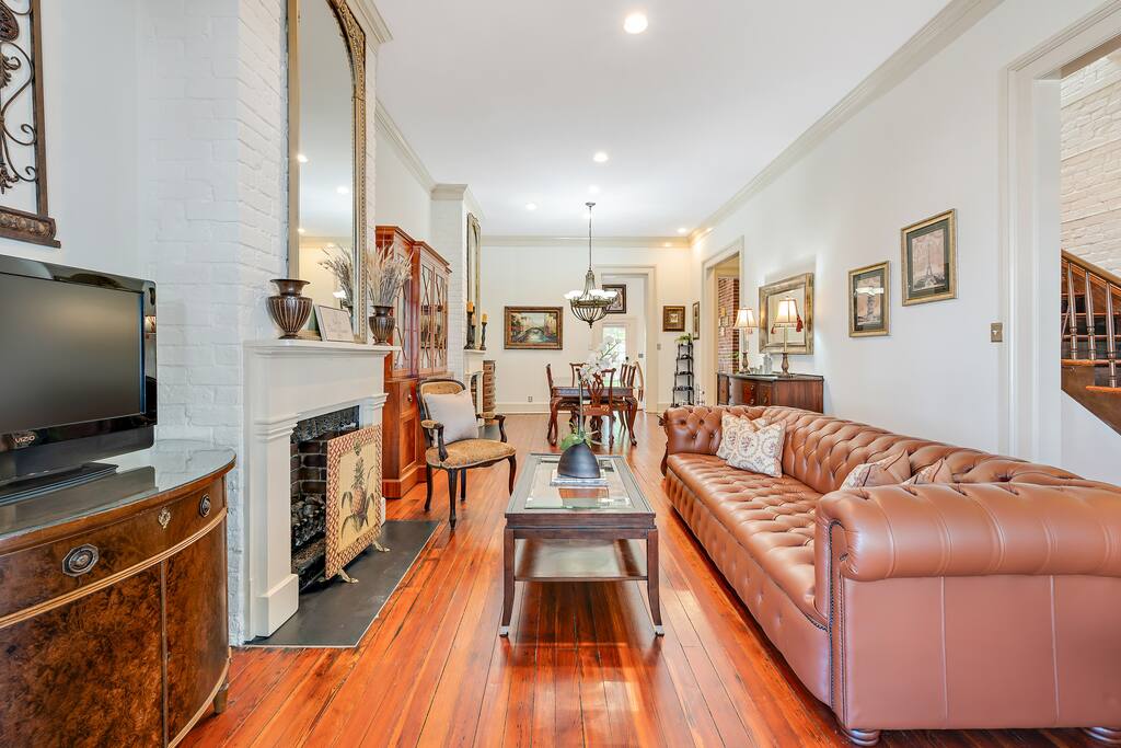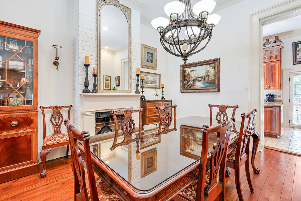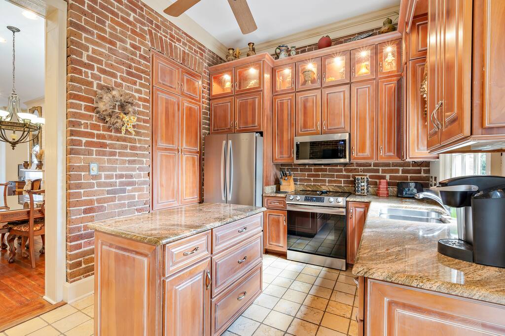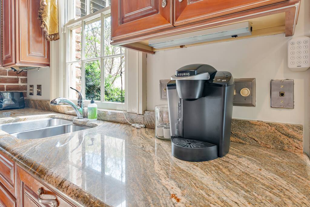 Step right into the opulence of a Gilded Age inspired retreat at the "Gilded Iron & Oak" on historic Broughton Street. This spectacular two-story row house, originally commissioned in 1883 by Alderman Daniel O'Connor, is an architectural masterpiece that perfectly blends Savannah's history with the conveniences of modern, high-end living. The main level of this luxury 3 bedroom residence is designed for seamless entertaining. The open flow showcases the home's historic pedigree with hardwood floors and authentic exposed brickwork that serve as the backdrop for stunning, insta-worthy modern design. The living and dining areas are complemented by a convenient guest bath downstairs. The gourmet kitchen perfectly merges historic exposed brick walls with rich wood cabinetry, granite countertops, and modern stainless steel appliances, offering a high-end, functional space that flows seamlessly into the main living areas and provides direct access to an enclosed garden courtyard perfect for morning coffee or evening cocktails. Upstairs, three private bedrooms are curated as tranquil escapes. Each room is appointed for ultimate comfort, featuring designer linens and sophisticated decor. The primary bedroom features original dark hardwood floors, a stately fireplace with a white brick chimney, and a sunny bay window seating area overlooking Broughton St, all beneath a sophisticated tray ceiling. The second bedroom delivers dramatic historic character with its preserved exposed brick wall, a decorative fireplace, and a skylight that provides both natural light by day and celestial sights at night. The charming third bedroom overlooks the courtyard through its large picture windows, providing a quiet retreat with views of the surrounding trees and excellent natural light. The upper floor also includes two full bathrooms, ensuring comfort and privacy for all guests. Forget the stress of parking—you have two guaranteed private off-street parking spaces, a priceless convenience in the Historic District. The property’s location is your Savannah flex. You are steps from River Street, Forsyth Park, and the city’s best bars and dining. Better yet, the home sits directly on the iconic St. Patrick’s Day parade route. Book the ultimate luxury city experience. SVR-03198