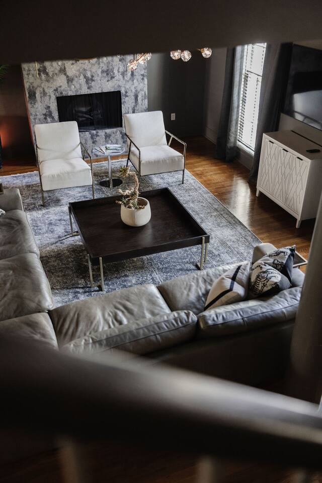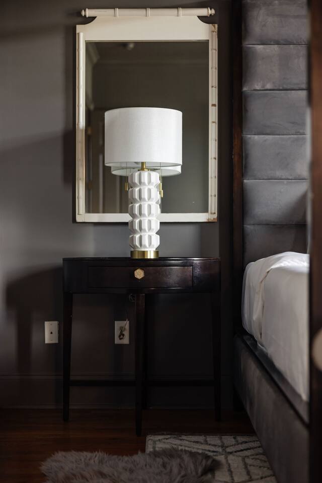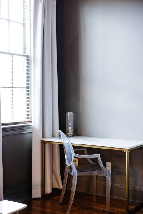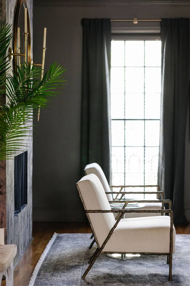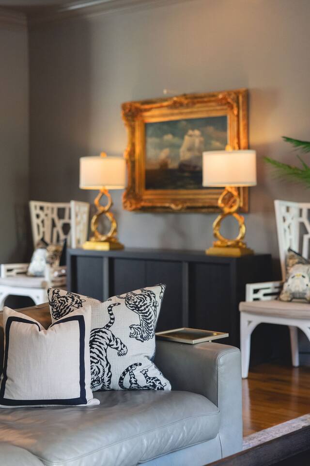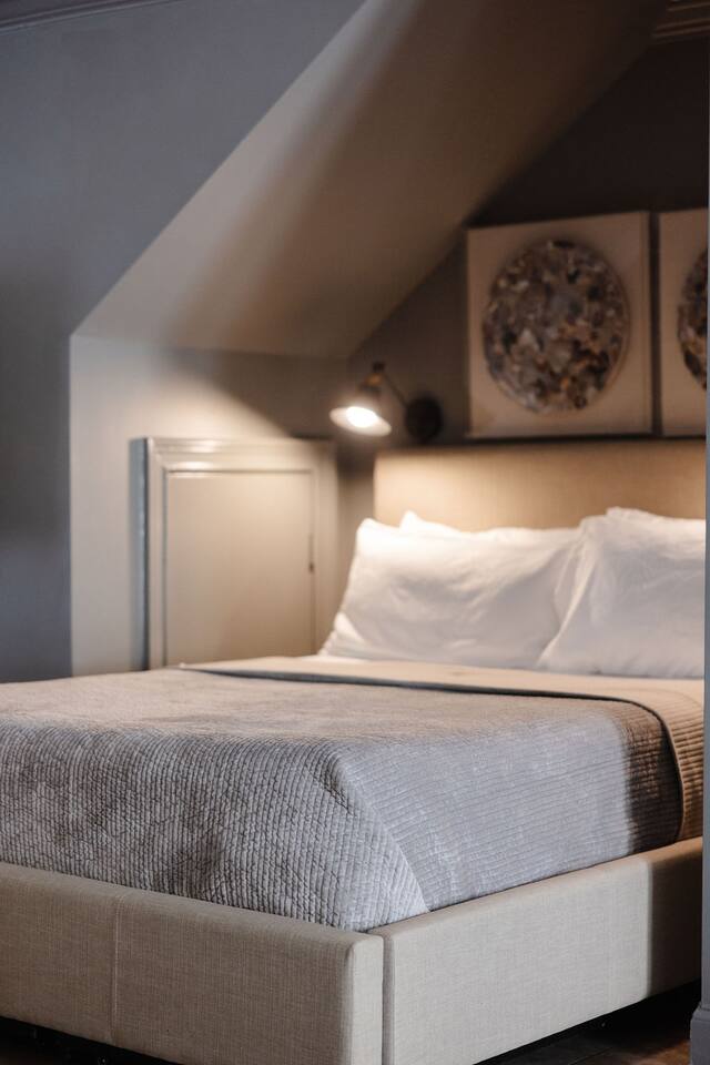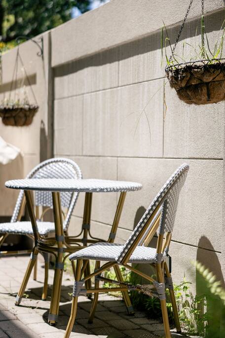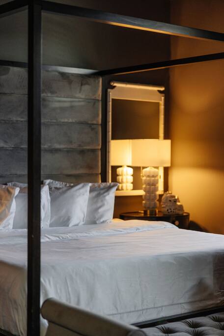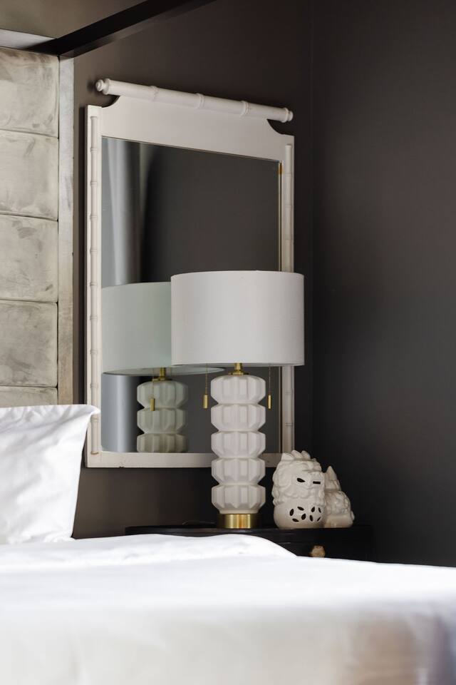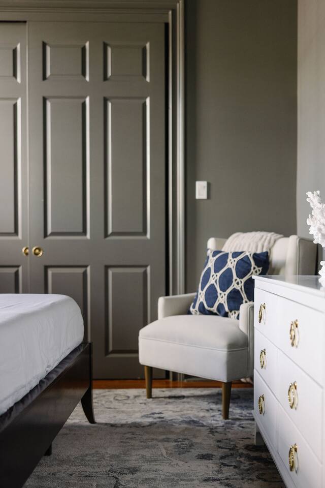 The Space Main House (Sleeps 4): 2 elegant ensuite bedrooms, each with: King bed, luxury linens Blackout curtains & adjustable ceiling fans Primary bathroom with soaking tub and large walk-in closet Bright living room with smart TV Fully equipped kitchen with modern appliances Dining area with seating for 6+ Half bathroom for guests Garden Apartment (Sleeps 2–4): Queen bed with high-quality bedding Double pull-out sofa bed (great for kids or short stays) Fully appointed kitchenette Private bathroom In-unit washer/dryer Access to shared courtyard with the main house Note: Garden apartment can sleep 4, but ideal for quiet stays—no parties, please. Outdoor Living Charming courtyard with patio seating Historic brick surroundings and lush greenery Perfect for morning coffee or a glass of wine after exploring Location Highlights 2-minute walk to Chatham Square 6-minute walk to Forsyth Park Close to shops, restaurants, museums, and trolley stops Tucked away in a peaceful block just south of Liberty, offering the perfect balance of walkability and quiet Amenities High-speed Wi-Fi Smart TVs Central A/C & heat Towels, linens, shampoo & soap provided In-unit laundry (both main house & apartment) Professionally cleaned prior to each stay Sleeping Arrangements Bedroom 1 (Main House): King bed + ensuite Bedroom 2 (Main House): King bed + ensuite Studio Apartment: Queen bed + pull-out double sofa bed