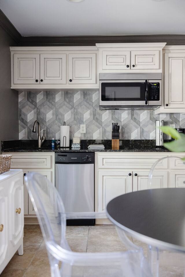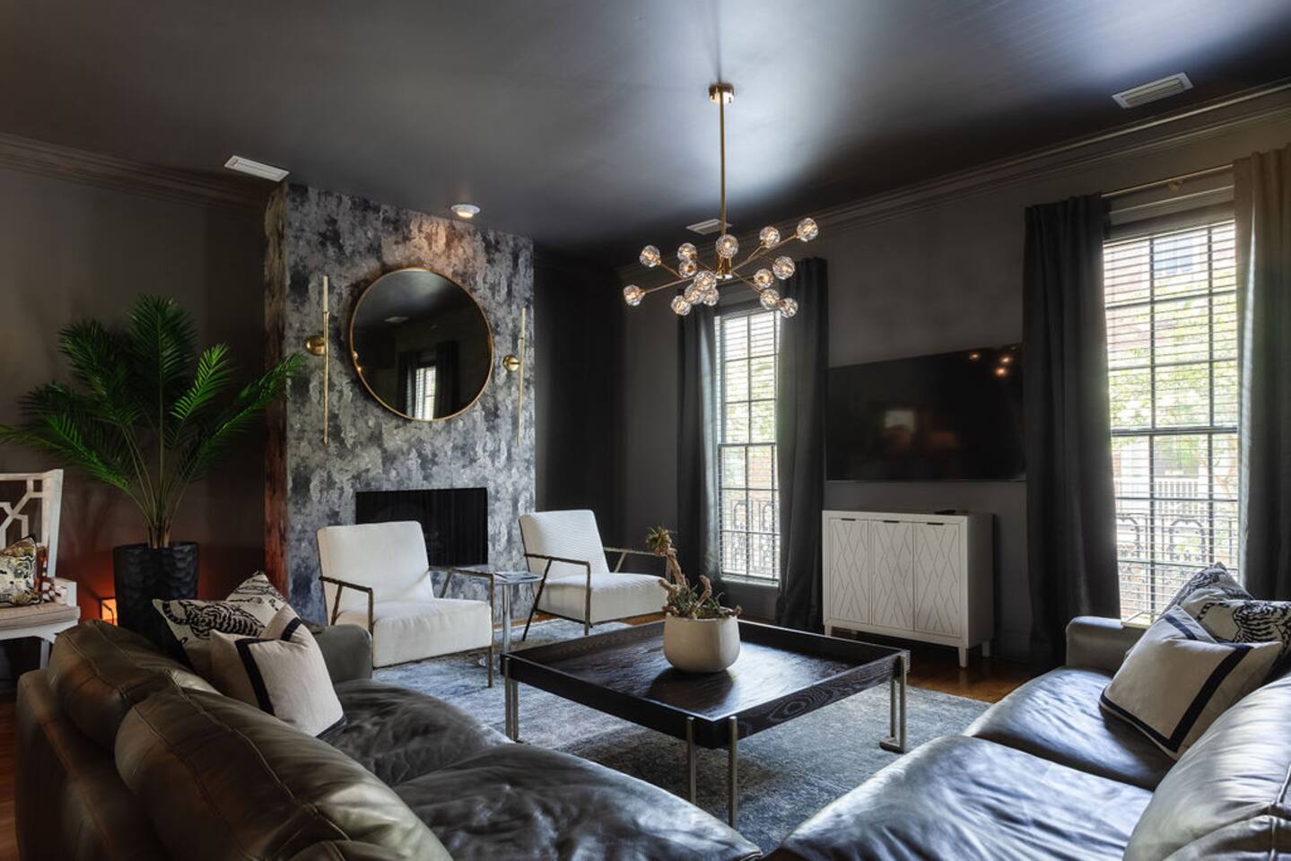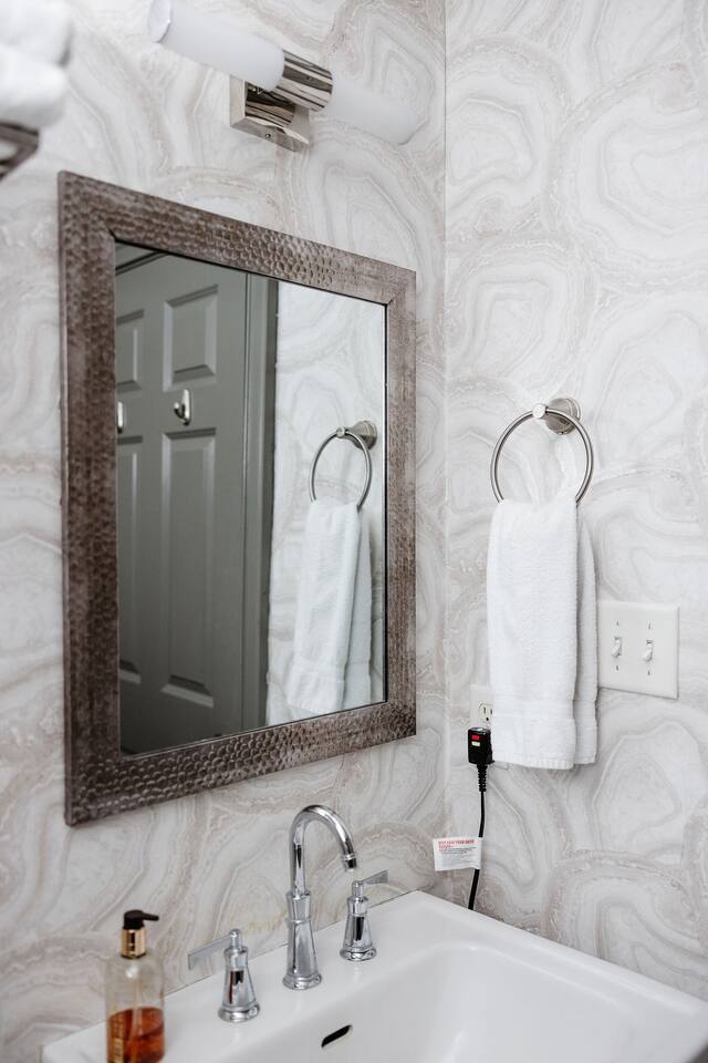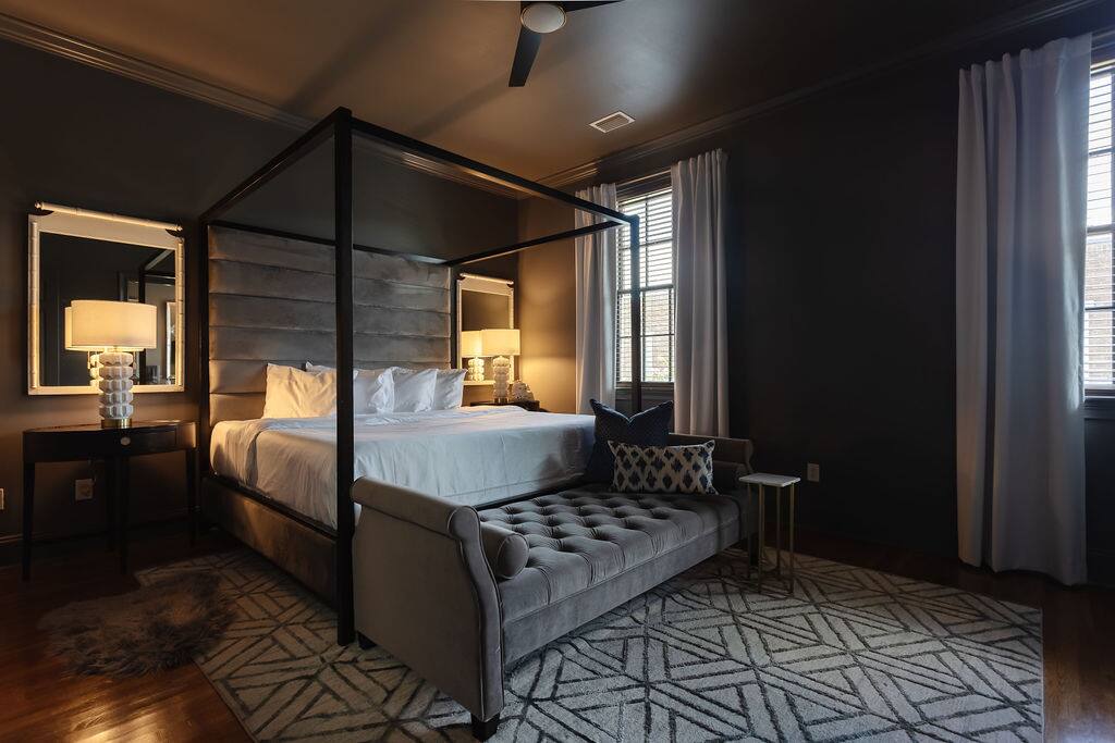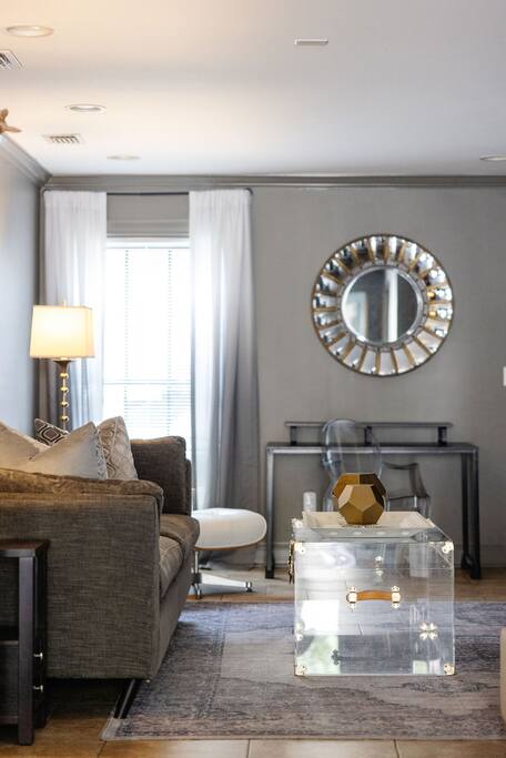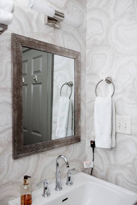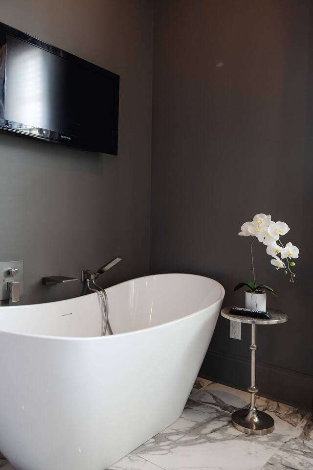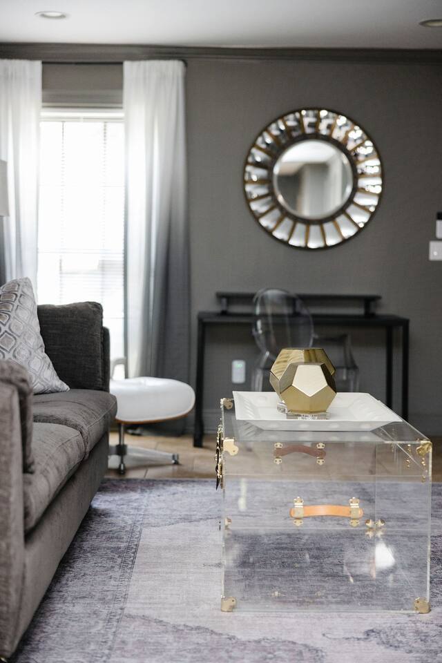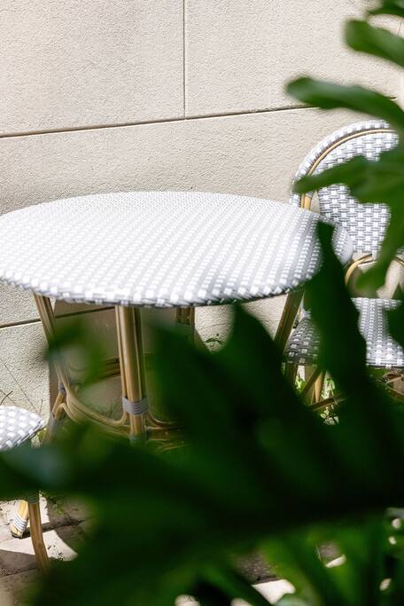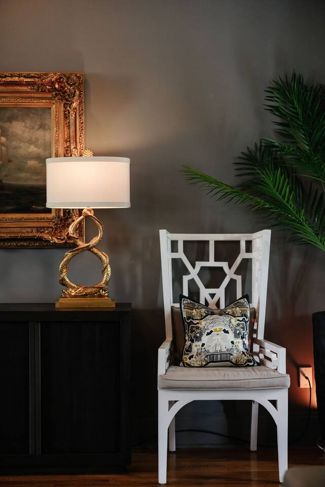 The Space Main House (Sleeps 4): 2 elegant ensuite bedrooms, each with: King bed, luxury linens Blackout curtains & adjustable ceiling fans Primary bathroom with soaking tub and large walk-in closet Bright living room with smart TV Fully equipped kitchen with modern appliances Dining area with seating for 6+ Half bathroom for guests Garden Apartment (Sleeps 2–4): Queen bed with high-quality bedding Double pull-out sofa bed (great for kids or short stays) Fully appointed kitchenette Private bathroom In-unit washer/dryer Access to shared courtyard with the main house Note: Garden apartment can sleep 4, but ideal for quiet stays—no parties, please. Outdoor Living Charming courtyard with patio seating Historic brick surroundings and lush greenery Perfect for morning coffee or a glass of wine after exploring Location Highlights 2-minute walk to Chatham Square 6-minute walk to Forsyth Park Close to shops, restaurants, museums, and trolley stops Tucked away in a peaceful block just south of Liberty, offering the perfect balance of walkability and quiet Amenities High-speed Wi-Fi Smart TVs Central A/C & heat Towels, linens, shampoo & soap provided In-unit laundry (both main house & apartment) Professionally cleaned prior to each stay Sleeping Arrangements Bedroom 1 (Main House): King bed + ensuite Bedroom 2 (Main House): King bed + ensuite Studio Apartment: Queen bed + pull-out double sofa bed