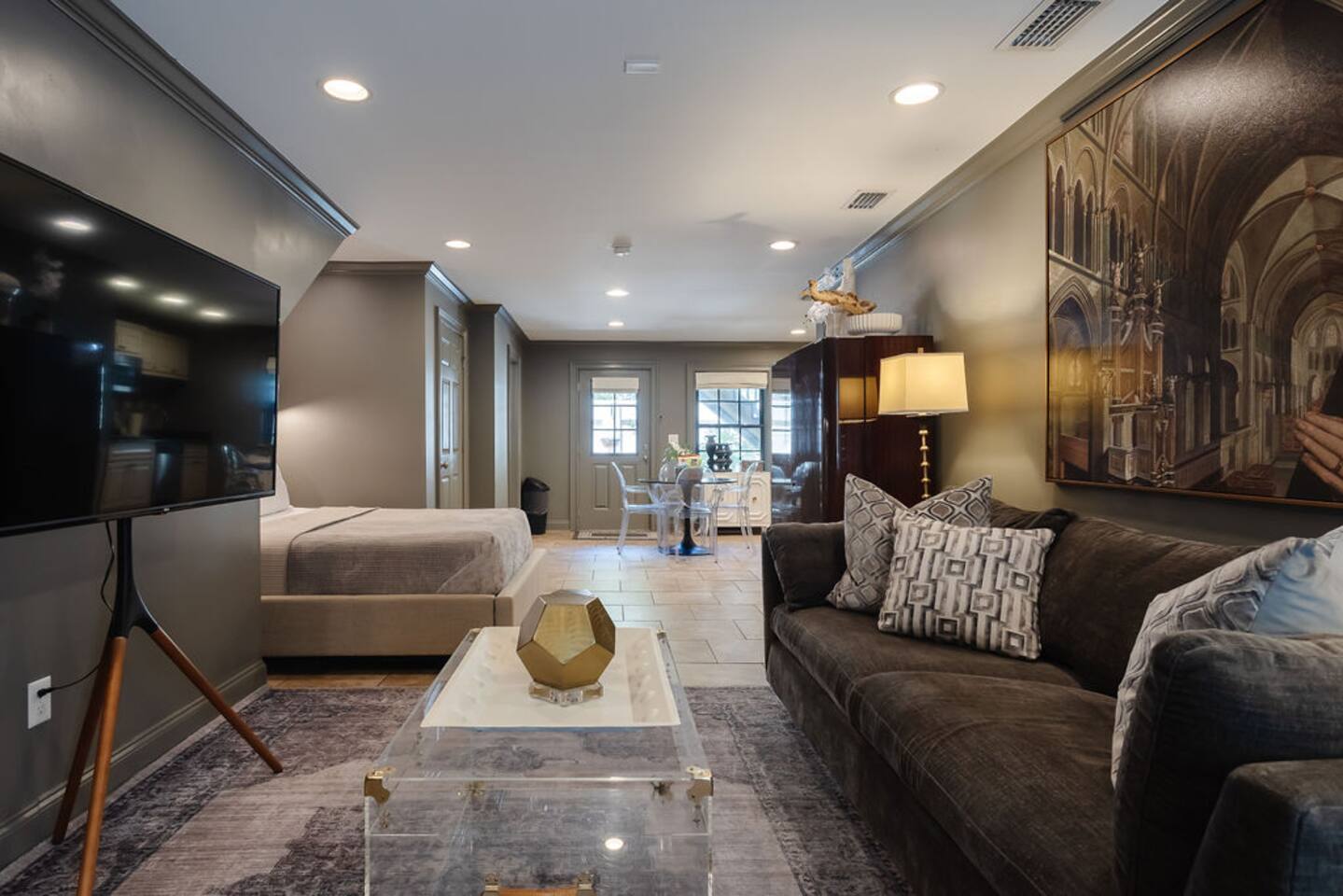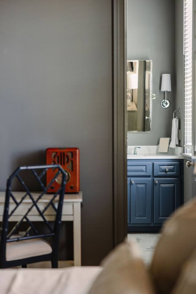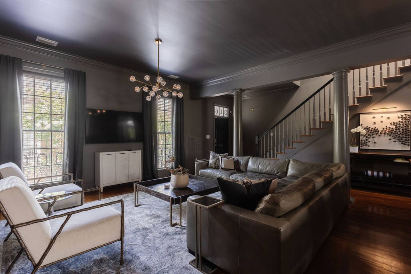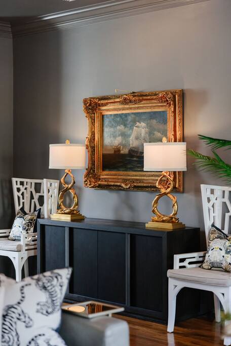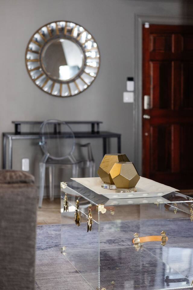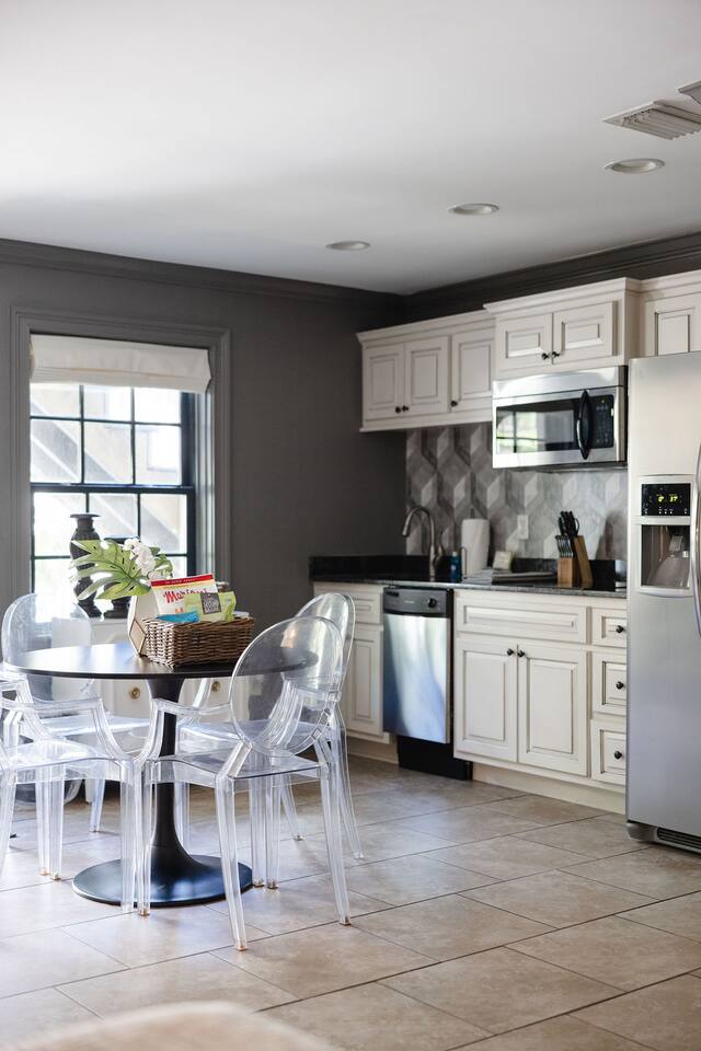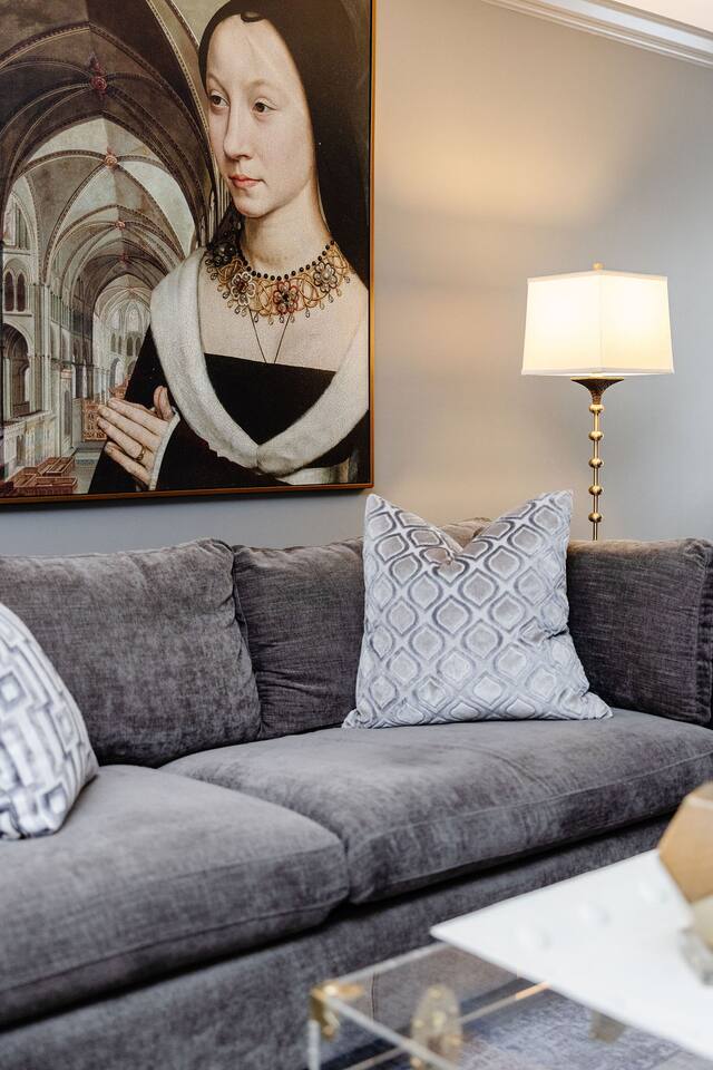 The Space Main House (Sleeps 4): 2 elegant ensuite bedrooms, each with: King bed, luxury linens Blackout curtains & adjustable ceiling fans Primary bathroom with soaking tub and large walk-in closet Bright living room with smart TV Fully equipped kitchen with modern appliances Dining area with seating for 6+ Half bathroom for guests Garden Apartment (Sleeps 2–4): Queen bed with high-quality bedding Double pull-out sofa bed (great for kids or short stays) Fully appointed kitchenette Private bathroom In-unit washer/dryer Access to shared courtyard with the main house Note: Garden apartment can sleep 4, but ideal for quiet stays—no parties, please. Outdoor Living Charming courtyard with patio seating Historic brick surroundings and lush greenery Perfect for morning coffee or a glass of wine after exploring Location Highlights 2-minute walk to Chatham Square 6-minute walk to Forsyth Park Close to shops, restaurants, museums, and trolley stops Tucked away in a peaceful block just south of Liberty, offering the perfect balance of walkability and quiet Amenities High-speed Wi-Fi Smart TVs Central A/C & heat Towels, linens, shampoo & soap provided In-unit laundry (both main house & apartment) Professionally cleaned prior to each stay Sleeping Arrangements Bedroom 1 (Main House): King bed + ensuite Bedroom 2 (Main House): King bed + ensuite Studio Apartment: Queen bed + pull-out double sofa bed