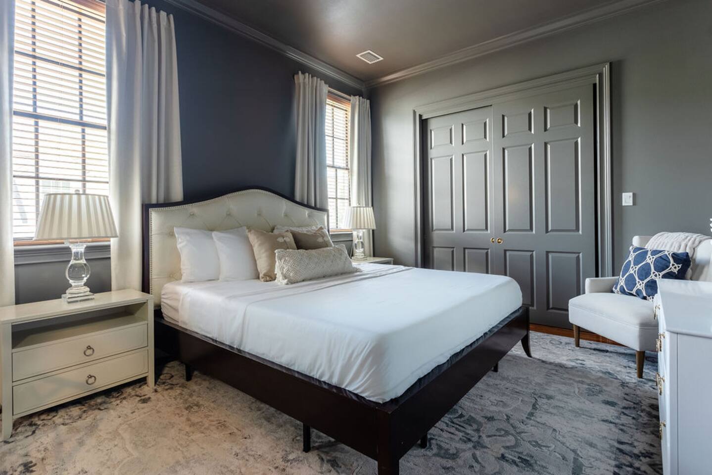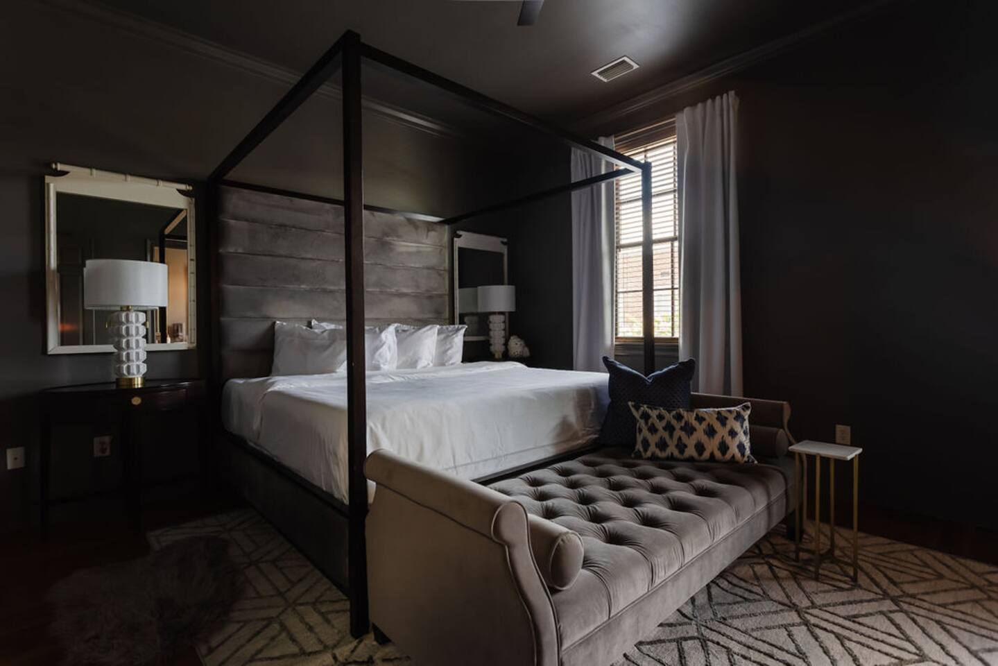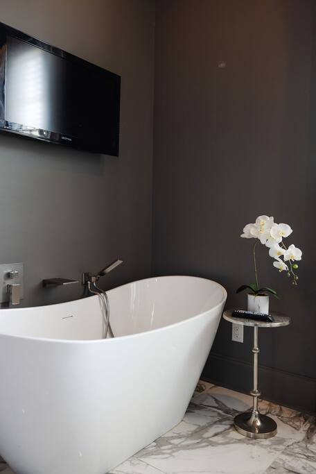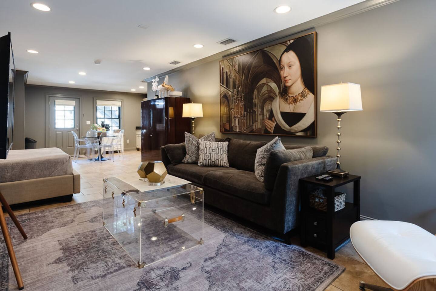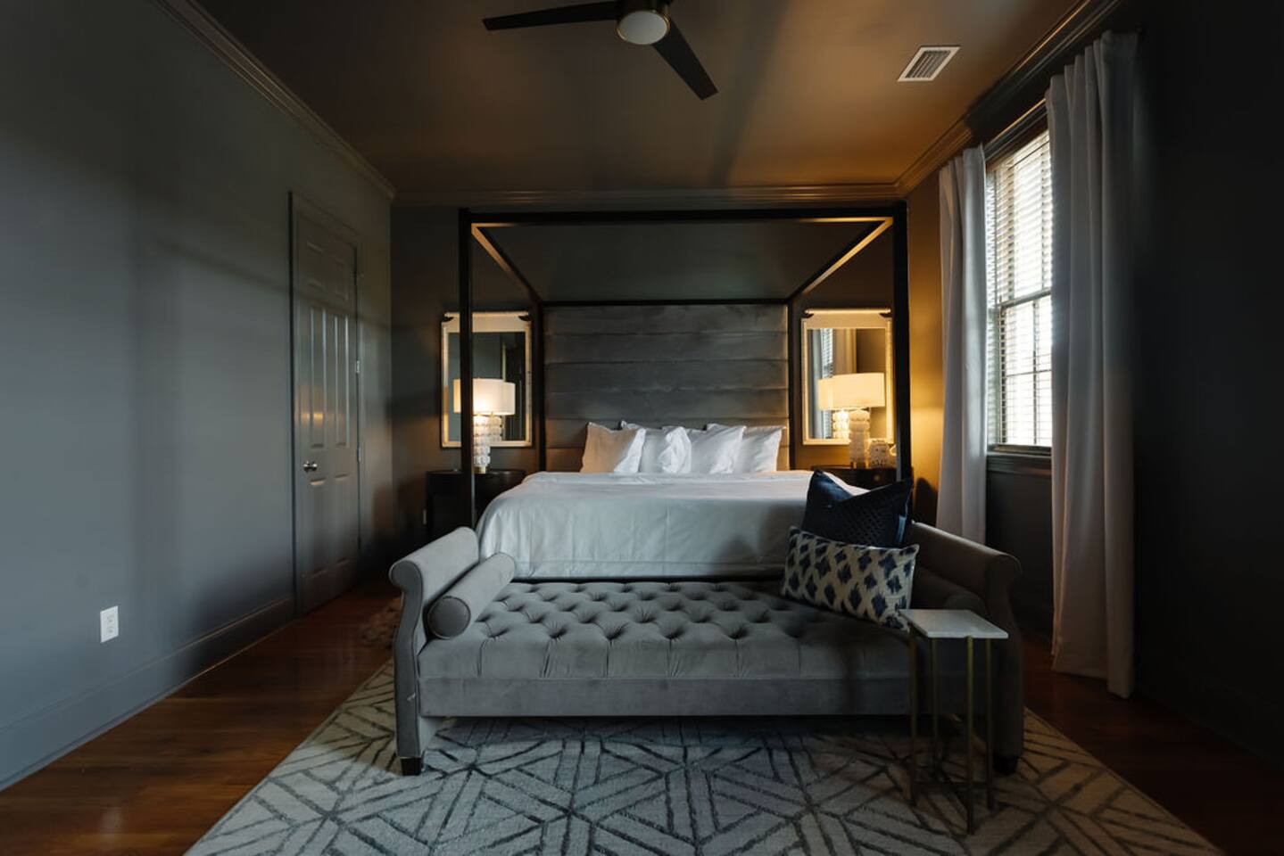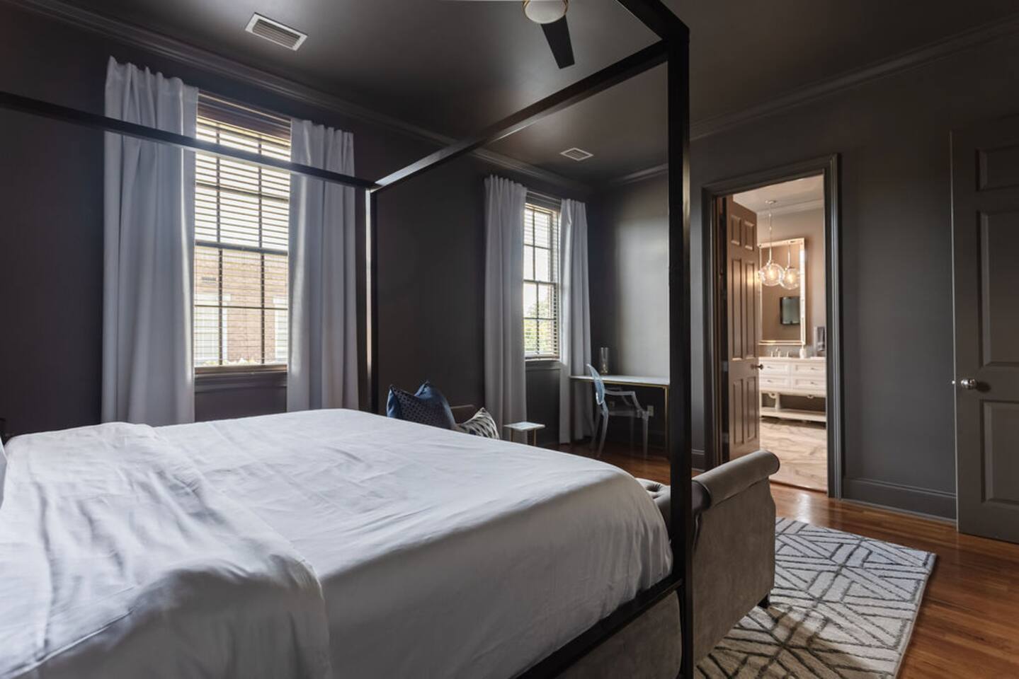 The Space Main House (Sleeps 4): 2 elegant ensuite bedrooms, each with: King bed, luxury linens Blackout curtains & adjustable ceiling fans Primary bathroom with soaking tub and large walk-in closet Bright living room with smart TV Fully equipped kitchen with modern appliances Dining area with seating for 6+ Half bathroom for guests Garden Apartment (Sleeps 2–4): Queen bed with high-quality bedding Double pull-out sofa bed (great for kids or short stays) Fully appointed kitchenette Private bathroom In-unit washer/dryer Access to shared courtyard with the main house Note: Garden apartment can sleep 4, but ideal for quiet stays—no parties, please. Outdoor Living Charming courtyard with patio seating Historic brick surroundings and lush greenery Perfect for morning coffee or a glass of wine after exploring Location Highlights 2-minute walk to Chatham Square 6-minute walk to Forsyth Park Close to shops, restaurants, museums, and trolley stops Tucked away in a peaceful block just south of Liberty, offering the perfect balance of walkability and quiet Amenities High-speed Wi-Fi Smart TVs Central A/C & heat Towels, linens, shampoo & soap provided In-unit laundry (both main house & apartment) Professionally cleaned prior to each stay Sleeping Arrangements Bedroom 1 (Main House): King bed + ensuite Bedroom 2 (Main House): King bed + ensuite Studio Apartment: Queen bed + pull-out double sofa bed