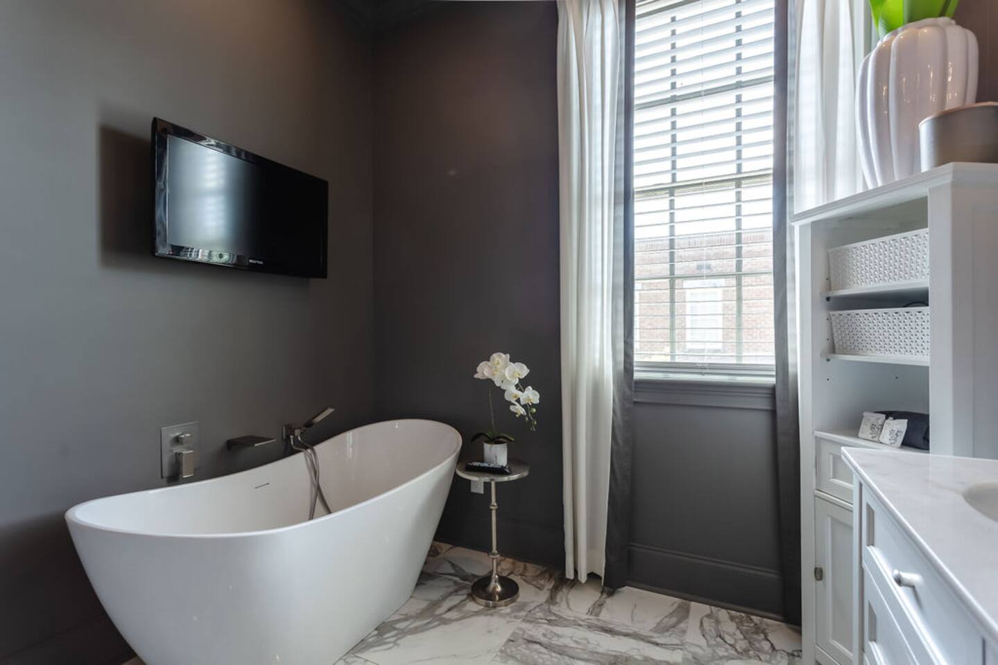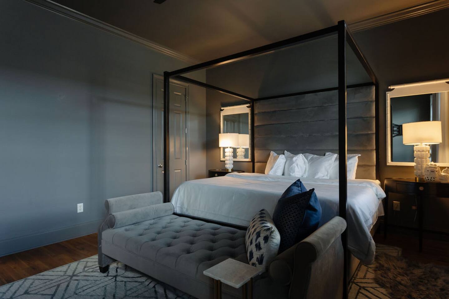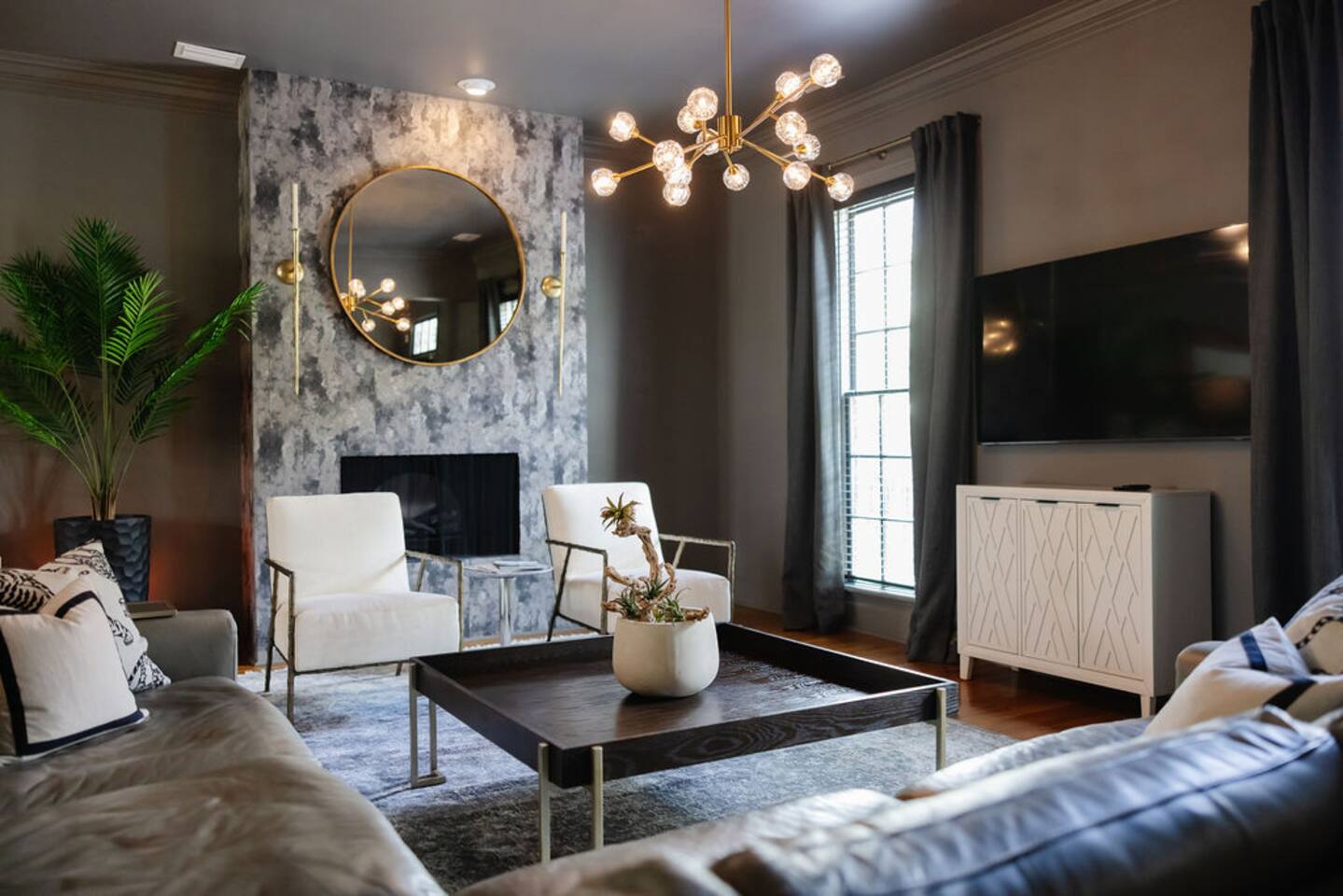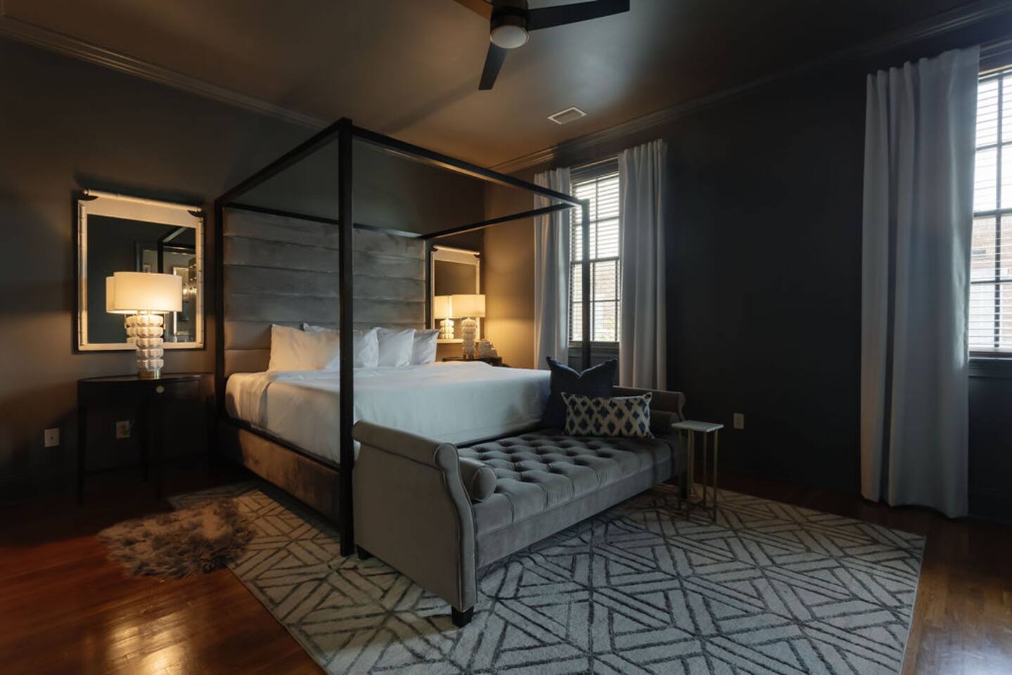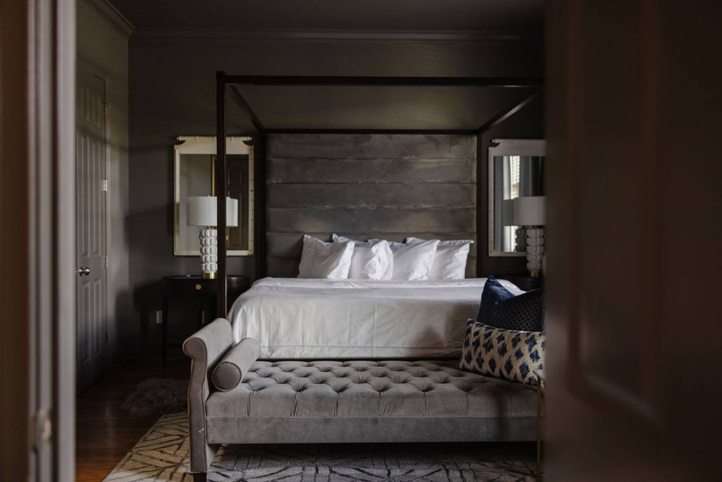 The Space Main House (Sleeps 4): 2 elegant ensuite bedrooms, each with: King bed, luxury linens Blackout curtains & adjustable ceiling fans Primary bathroom with soaking tub and large walk-in closet Bright living room with smart TV Fully equipped kitchen with modern appliances Dining area with seating for 6+ Half bathroom for guests Garden Apartment (Sleeps 2–4): Queen bed with high-quality bedding Double pull-out sofa bed (great for kids or short stays) Fully appointed kitchenette Private bathroom In-unit washer/dryer Access to shared courtyard with the main house Note: Garden apartment can sleep 4, but ideal for quiet stays—no parties, please. Outdoor Living Charming courtyard with patio seating Historic brick surroundings and lush greenery Perfect for morning coffee or a glass of wine after exploring Location Highlights 2-minute walk to Chatham Square 6-minute walk to Forsyth Park Close to shops, restaurants, museums, and trolley stops Tucked away in a peaceful block just south of Liberty, offering the perfect balance of walkability and quiet Amenities High-speed Wi-Fi Smart TVs Central A/C & heat Towels, linens, shampoo & soap provided In-unit laundry (both main house & apartment) Professionally cleaned prior to each stay Sleeping Arrangements Bedroom 1 (Main House): King bed + ensuite Bedroom 2 (Main House): King bed + ensuite Studio Apartment: Queen bed + pull-out double sofa bed