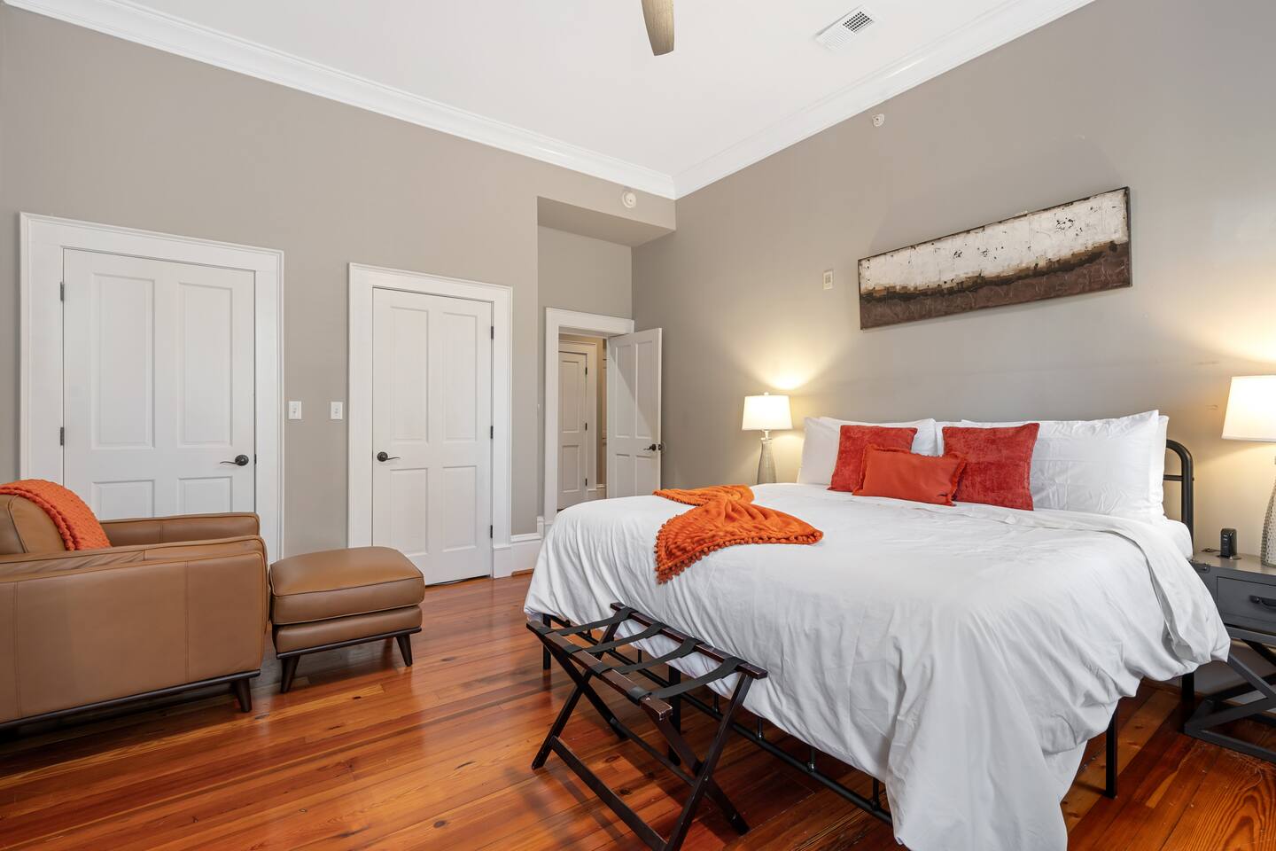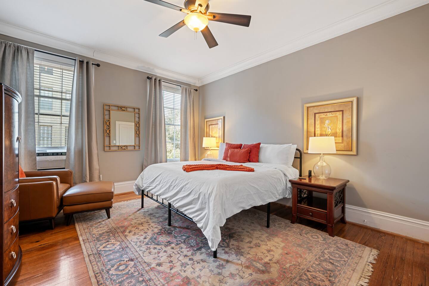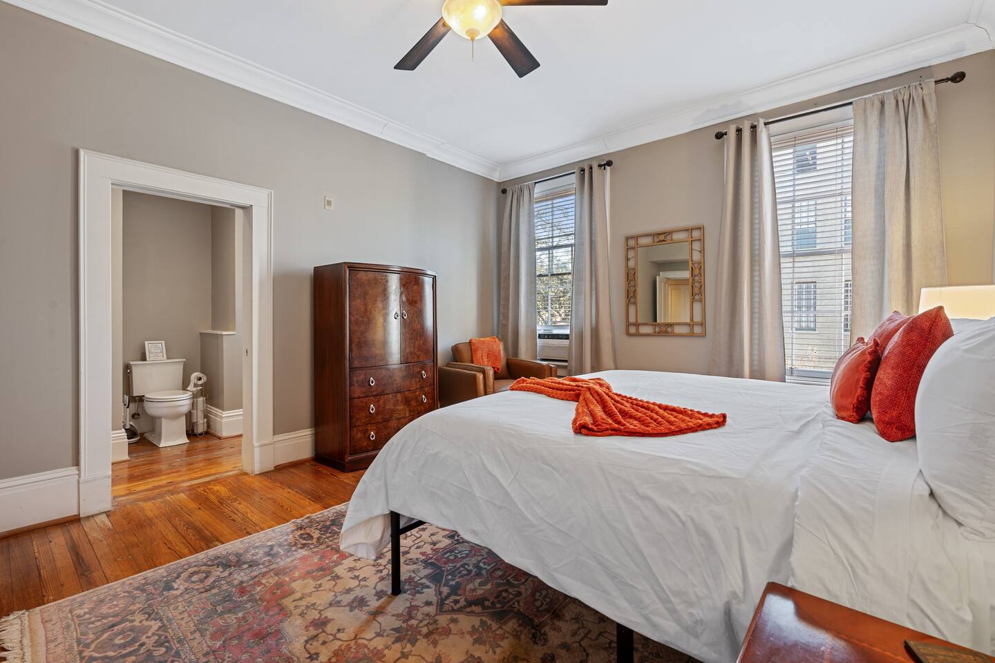 Welcome to The Merchant on York St, a grand 9-bedroom, 7-bathroom luxury home nestled in the heart of Savannah’s Historic District. This extraordinary property, once a single-family estate, has been carefully transformed into two beautifully appointed apartments that retain the charm and elegance of the 1853 building. Named after its original owner, Captain Henry James Dickerson, a pioneering stevedore and prominent local figure, the home stands as a testament to Savannah’s rich maritime history. With its spacious layout, this home offers an ideal retreat for large groups or families looking for both comfort and sophistication. The home features stunning period architecture, with high ceilings, intricate woodwork, and large windows that fill the space with natural light. Its seven luxurious bathrooms and nine well-appointed bedrooms provide ample space for guests to relax and unwind. There are 5 king bedrooms, all ensuite, and 4 queen bedrooms. For those seeking an extra touch of indulgence, private chef services and in-home spa treatments are available upon request, ensuring your stay is nothing short of exceptional. Whether you're craving a gourmet meal prepared by a personal chef or a soothing massage in the comfort of your own home, we cater to your every need. Located on East York Street, the home is perfectly positioned to take full advantage of Savannah’s charm. It’s just steps away from vibrant shops, historic landmarks, and world-class dining, and only a short stroll from the iconic St. Patrick’s Day parade route. The city’s walkable streets make it easy to explore all that this beautiful southern city has to offer, while paid parking is conveniently accessible for guests arriving by car. Whether you're here for a special event, a family reunion, or simply a luxurious getaway, The Merchant on York St promises a memorable and opulent experience in the heart of Savannah’s Historic District. SVR-03092 SVR-03093 SVR-03094
