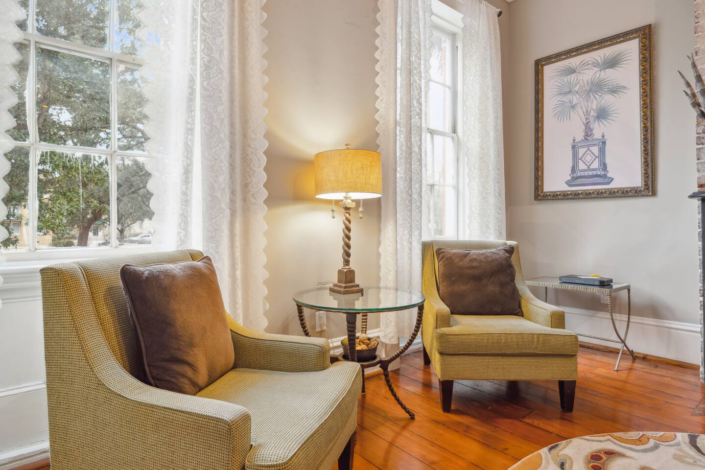 9 Bedrooms, 7 bathrooms next to Oglethorpe Square. You won't find a more walkable location in Savannah's Historic District. Two fully stocked kitchens await you along with four king size beds, all ensuite. This home is perfect for large families or small groups traveling together. No car is needed on E York St.