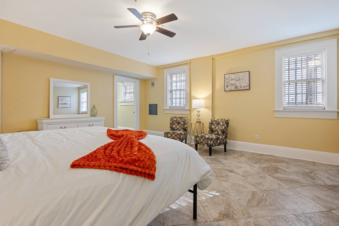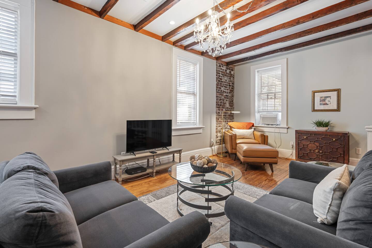 Welcome to The Captain’s House, a historic gem built in 1853 by Captain Henry James Dickerson, a prominent figure in Savannah’s maritime history. Eleven bedrooms and eleven bathrooms, perfect for large groups. 7 king beds and 4 queen beds plus two queen pullout couches so that you and your crew can have privacy while enjoying Savannah as a group. Five kitchens await your every need. You won't find a better location in Savannah. Add to that a rooftop balcony, luxury bedding and incredibly well maintained historic home and you've got a vacation to remember. This home is 5 separate apartments, rented all together for large groups. All king bedrooms are ensuite. This beautifully restored property offers 11 bedrooms and 9 full and 2 half bathrooms, making it the perfect destination for large groups, family reunions, or small retreats. With accommodations for up to 26 guests, this home provides a unique and unforgettable setting for your gathering. Located in the heart of Savannah’s Historic District, no car is needed to explore the city’s charm. Simply Uber from the airport and enjoy walking to iconic landmarks, squares, shops, and restaurants. Situated directly on the St. Patrick’s Day parade route, The Captain’s House offers unparalleled access to one of Savannah’s most celebrated events. Inside, you’ll find exposed brick, spacious interiors, and breathtaking views of Savannah. Whether you’re planning a festive celebration or a peaceful retreat, The Captain’s House is the ultimate blend of history, luxury, and convenience. Paid street parking is available. There is a parking garage available at the far side of Oglethorpe Square, a short walk away. You will not need a car while staying at the Captain's House. Broughton Street and all shopping and restaurants are an easy 2-10 minute walk. River Street is a 7 minute walk. Can we make your stay even more special? Contact us anytime for additional amenities like a private chef experience, in room spa services, champagne and flowers, you name it. We are here to make your trip to Savannah unforgettable. SVR-03092 SVR-03093 SVR-03094 SVR-03095 SVR-03096