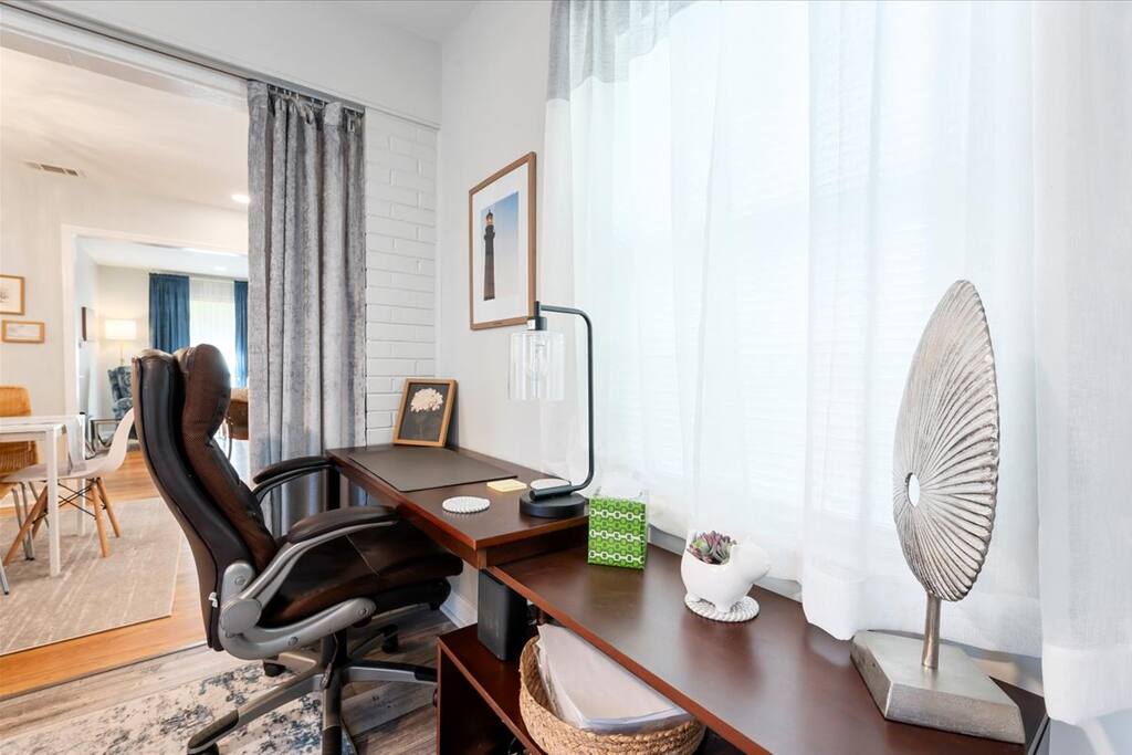 What You’ll Love: Spacious 1,461 sq. ft. home with a cozy atmosphere Dedicated workspace for remote work or study Prime location near hospitals, parks, and top attractions Flexible sleeping arrangements for families or groups Sleeping Arrangements: Master Bedroom – King bed Bay Window Bedroom – King bed Corner Bedroom – Twin trundle bed Office/Bonus Room – Pullout full-size couch Retreat to the well-appointed bedrooms, each offering a tranquil atmosphere and quality bedding to ensure a restful night's sleep. Relax in the tastefully decorated living room, where you'll find plush furnishings and a flat-screen TV for entertainment. The kitchen has the appliances you need and is stocked, ready for your arrival. Explore Savannah with ease – our home is conveniently situated near popular attractions and parks, making it a breeze to discover the city's rich history and vibrant culture.