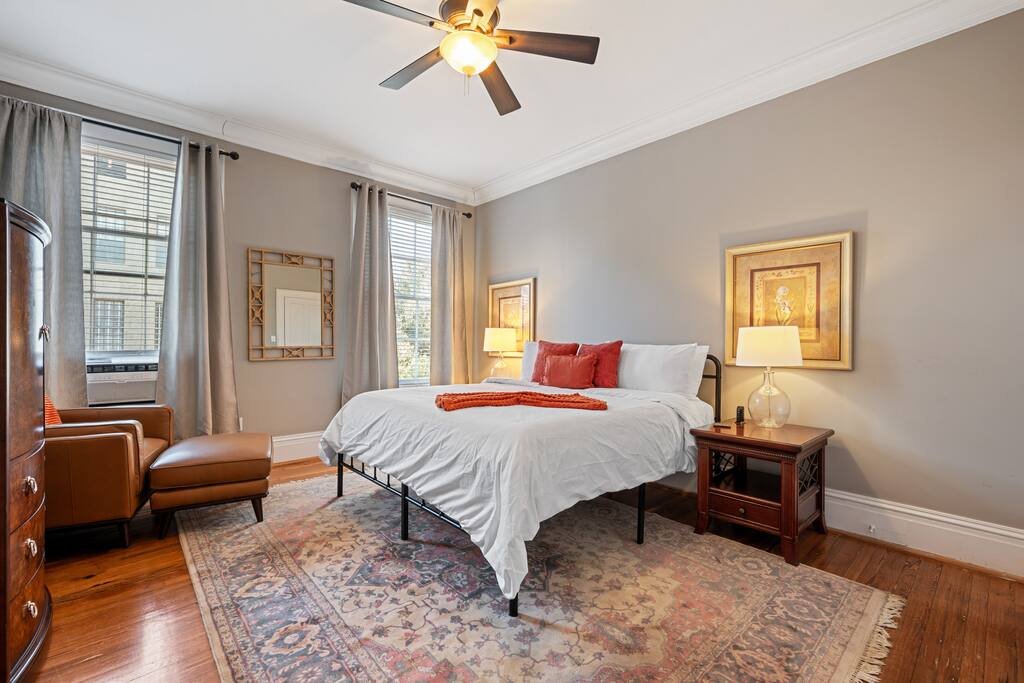 Two apartments at the top of an incredible historic home on the St. Patrick's Day Parade route. Incredible, walkable location and amazing views from two balconies. Three king rooms, all ensuite await your every wish for a fantastic Savannah getaway.
