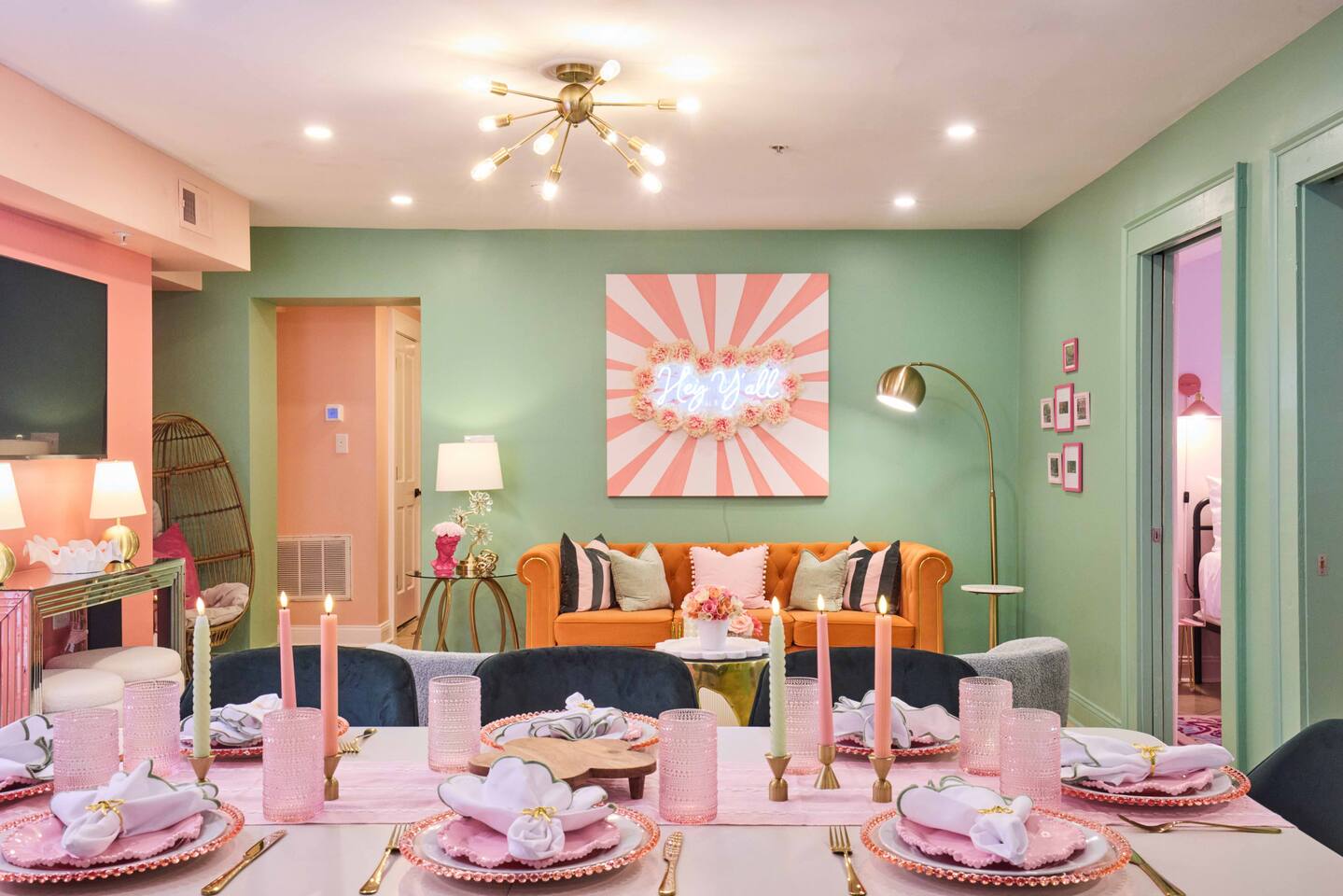 Step Into History and Modern Comfort in this Fully Walkable Location. Every space has been thoughtfully curated to ensure selfies can be taken. Welcome to this beautifully restored 4-bedroom, 2-bath apartment located in the heart of Savannah’s Historic District. Highlights about this property: -Located on Oglethorpe Square, one of the most popular square's in Downtown Savannah. -2 minute walk to Broughton Street. The most popular shopping street in Savannah. -A get bar/ get ready vanity station. -Every room has its own theme. -5 minute walk to River Street. This street has all the restaurant and bars. Inside, you’ll find two king bedrooms and two queen bedrooms, offering a perfect retreat after a day of exploring Savannah. The apartment features a full kitchen and a spacious dining area, perfect for preparing and enjoying meals together. Step out onto the street-level balcony to take in the vibrant surroundings and enjoy a prime spot for people-watching or parade viewing – this home sits directly on the parade route and next to beautiful Oglethorpe Square. WARNING: Expect to argue over which room you're going to be sleeping in. Stairs: This is a ground floor apartment. One step down to access Parking: Paid street parking or parking garage close by Noise: Please be aware there is some street noise. Enhance Your Stay with Our Exclusive Services To make your visit even more enjoyable, we offer a variety of in-home services upon request, including: - Grocery Delivery: Have your kitchen fully stocked with your favorite items before arrival. - Private Chef Services: Enjoy a personalized dining experience without leaving the comfort of your home. - Daily Housekeeping (additional charge): Keep your space tidy and refreshed during your stay. - In-Home Spa Services: Relax with a massage or spa treatment right in your residence. - Local Tours and Activities: Let us help you plan the perfect itinerary, from historic tours to riverboat cruises. - Transportation Services: Arrange private car services or airport transfers for a seamless travel experience. Book your stay at "Peachin' it Classy" and immerse yourself in Savannah’s rich history, vibrant culture, and exceptional hospitality. Contact us to add any of these additional amenities to your reservation! Short-Term Vacation Rental Certificate SVR-03092